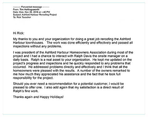 I have recommended them to others and my neighbor is planning on using them as well after seeing what a great job they did and how good my roof looks.