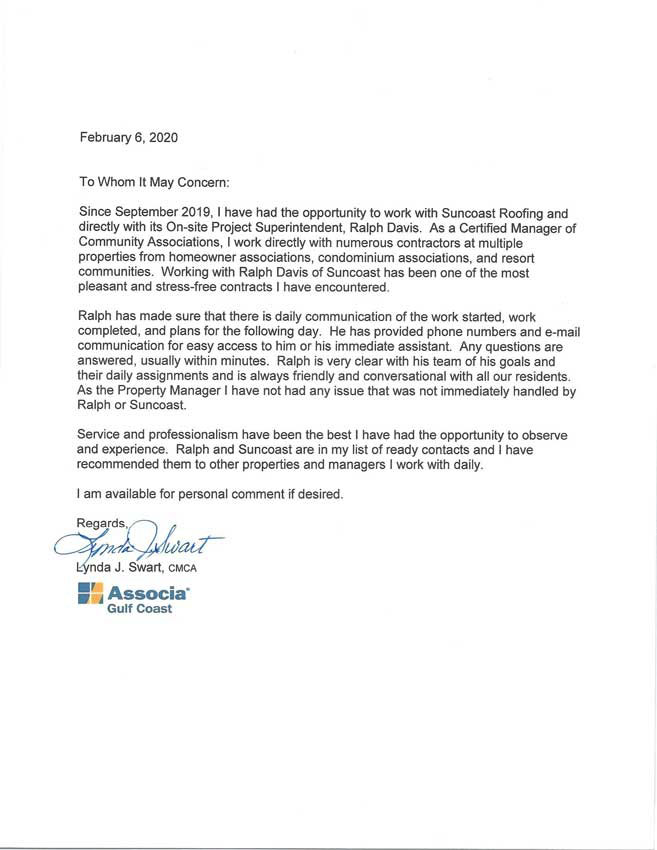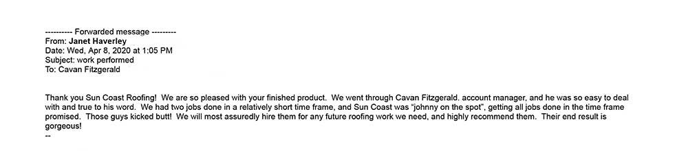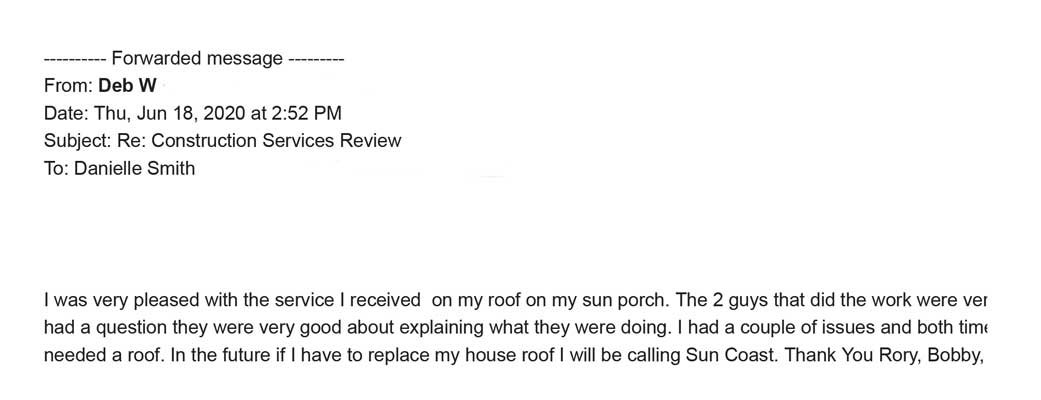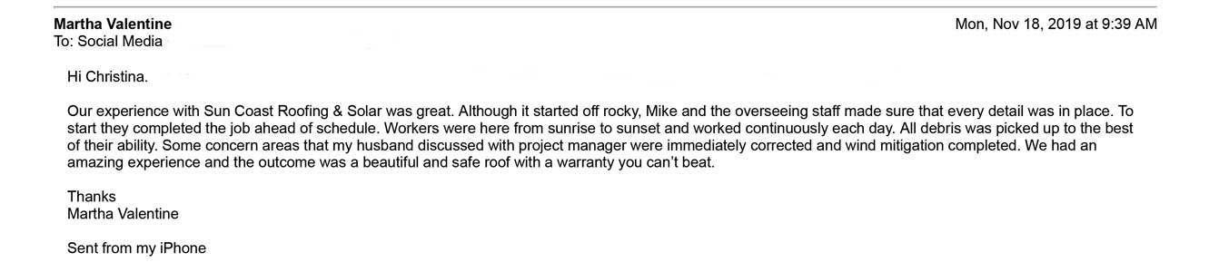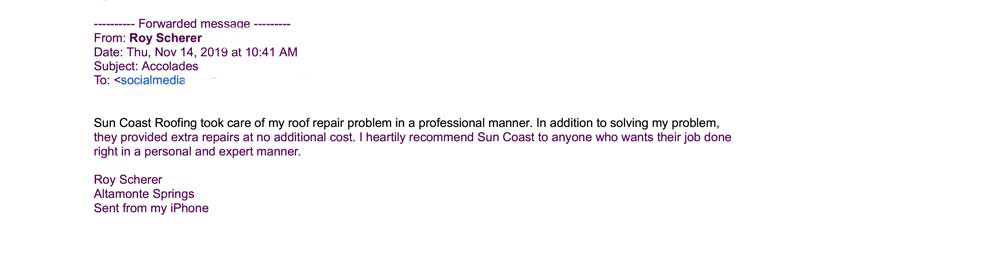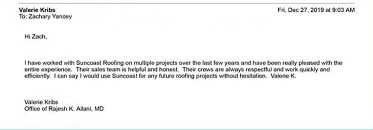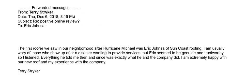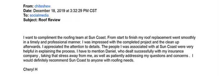 Sun Coast Roofing & Solar has faith and confidence in the services we provide, that we are open to both reviews and testimonials.